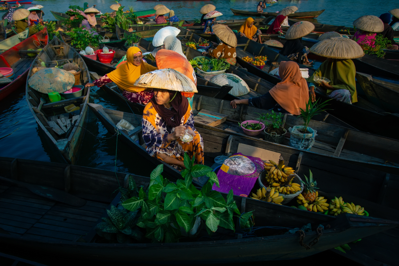 The Lok Baintan floating market in South Kalimantan, Indonesia which has existed since the 14th century, is both a centre of trade and a place where communities gather and interact. Women traders paddle their boats across the river to exchange goods, sustaining local livelihoods while strengthening the social and cultural ties passed down for generations, echoing the vibrant exchange traditions of the Silk Roads.